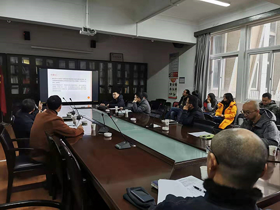2020年1月9日上午,校领导姜明华副董事长带领科技处部门负责人到太阳成集团tyc234cc古天乐就2020年国家社科基金申报准备工作进行调研指导。太阳成集团tyc234cc古天乐班子成员、系主任和部分骨干教师代表参加了调研会。会议由太阳成集团tyc234cc古天乐曹凯副经理主持。