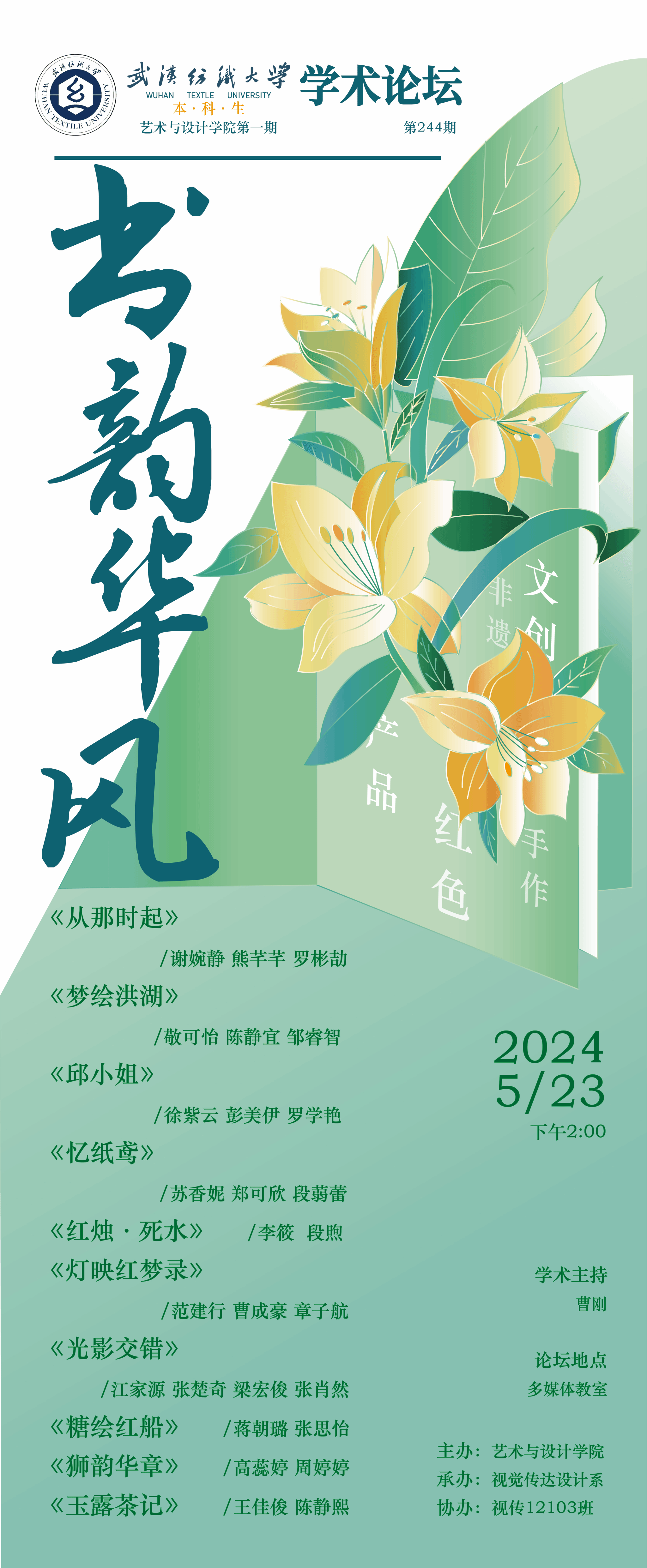 5月24日下午,太阳成集团tyc234cc古天乐第244期学术论坛暨太阳成集团tyc234cc古天乐第1期本科生论坛在太阳成集团tyc234cc古天乐2楼多媒体教室举行。本场论坛主题为“书韵华风”,由太阳成集团tyc234cc古天乐视觉传达设计专业承办,视传12103班协办,视传曹刚老师主持,学院部分员工参加了论坛。
