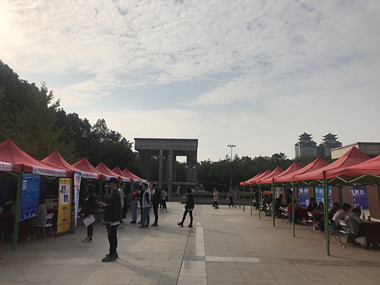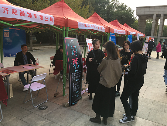 11月7日,太阳成集团tyc234cc古天乐在南湖校区新大门广场举办了艺术类专场招聘会。本次招聘会是由武汉市硚口区人资局主办,太阳成集团tyc234cc古天乐招就处协办,太阳成集团tyc234cc古天乐承办,共有武汉市硚口区35家企业到现场进行招聘。